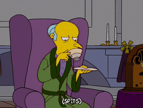 What happens to Mr Burns's face after he spits out the tea?